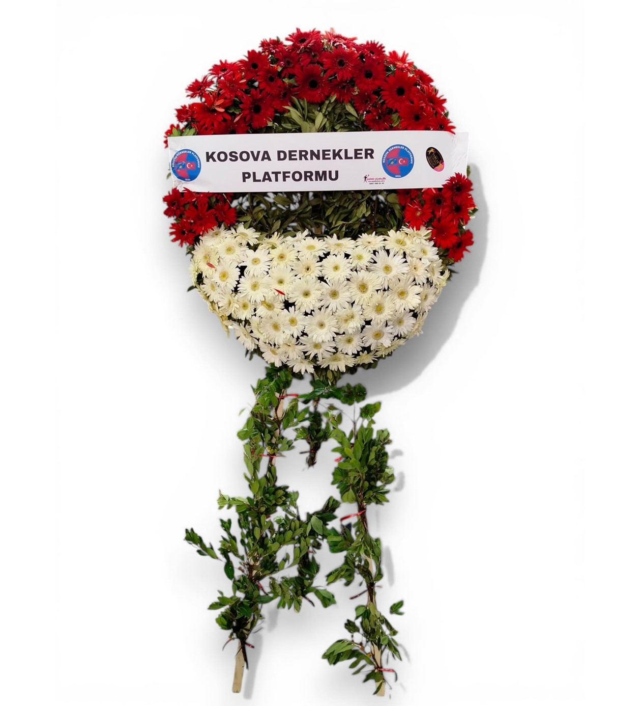 Tüm resmi törenlerin, açılışların ve taziye merasimlerinin vazgeçilmez klasiği olan Yuvarlak Çelenk modelimiz, sadeliği görkemle buluşturur. Üst kısmında kullanılan canlı kırmızı gerberalar ile alt kısmındaki saf beyaz gerberaların oluşturduğu keskin hatlı kontrast, hem kurumsal hem de duygusal mesajlarınızı en etkili şekilde iletmenizi sağlar.
