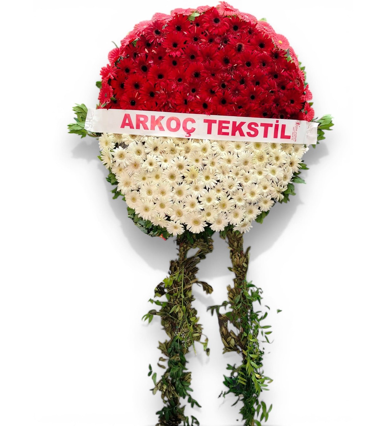 En zor günlerde, sevdiklerinize olan saygınızı ve taziye dileklerinizi en asil şekilde iletmek için hazırlanan Cenaze Çelengi modelimiz, klasik ve vakur bir duruş sergiler. Üst kısmında yer alan canlı kırmızı gerberalar ile alt kısmındaki saflığı simgeleyen beyaz gerberaların uyumu, hem derin bir hüznü hem de bitmeyen bir saygıyı temsil eder.