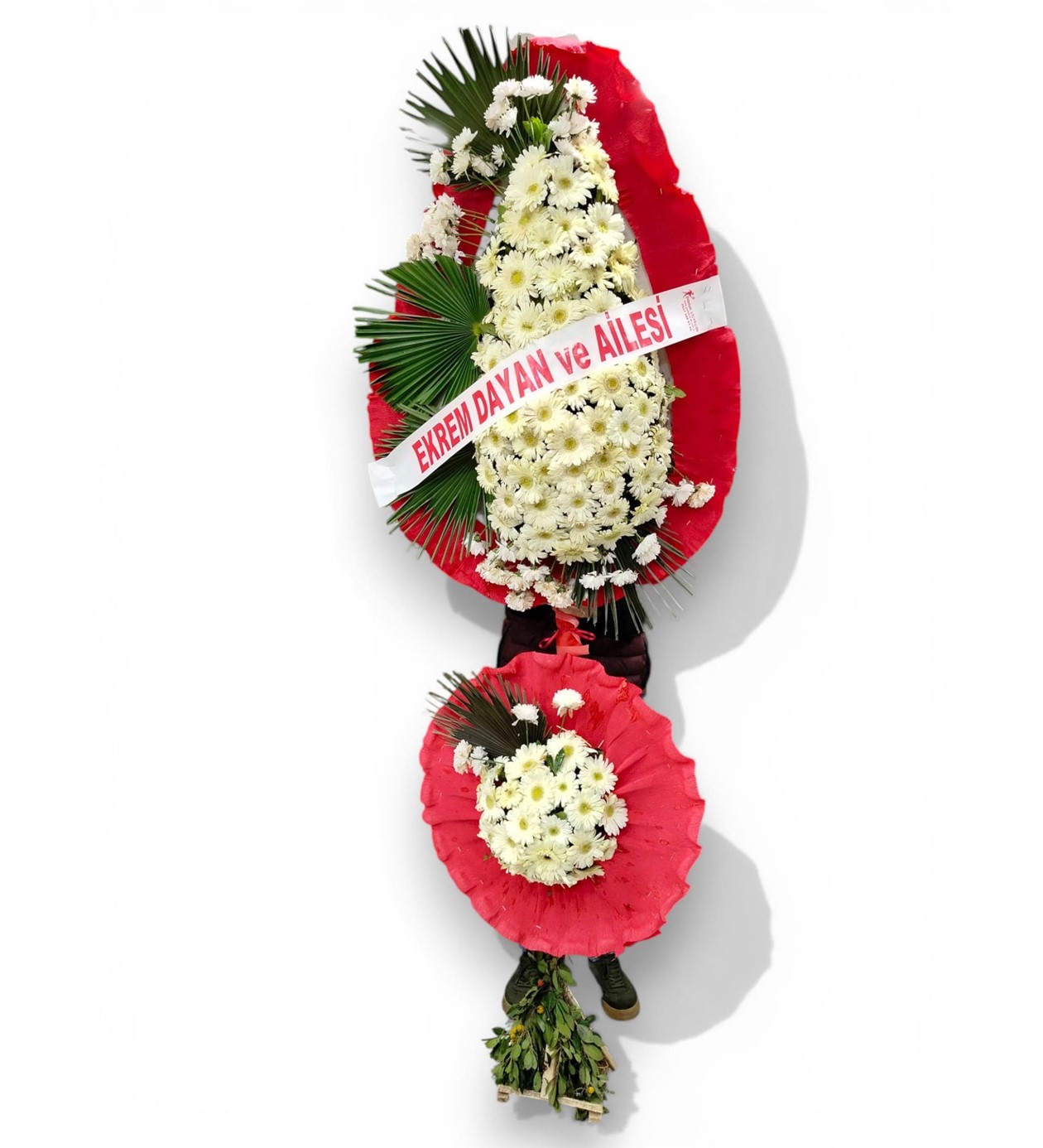 Özel davetlerde, görkemli düğünlerde ve yeni işletme açılışlarında farkınızı ortaya koyun! Kırmızının coşkusunu ve beyazın zarafetini iki katlı devasa bir formda sunan bu özel tasarım çelenk, başarı ve mutluluk dileklerinizi en üst seviyeden temsil etmek için hazırlandı. Canlı kırmızı tül çerçevesi ile derinlik kazanan bu model, tören alanının en dikkat çeken parçası olmaya aday.
