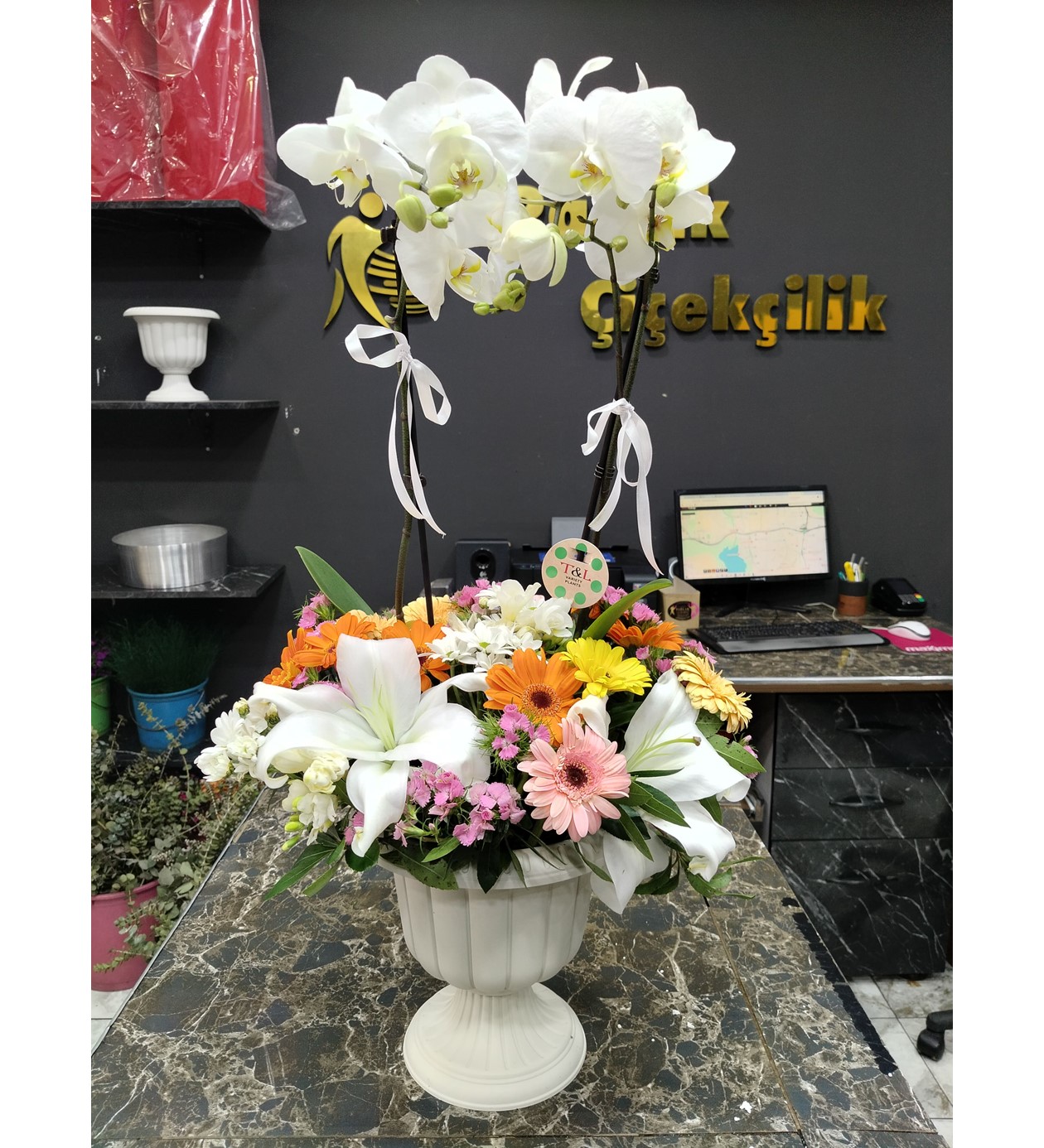 Uzun Ömürlü ve Taze: En seçkin seralardan gelen birinci sınıf canlı orkideler ve günlük taze kesme çiçekler, aranjmanın güzelliğini uzun süre korumasını sağlar.