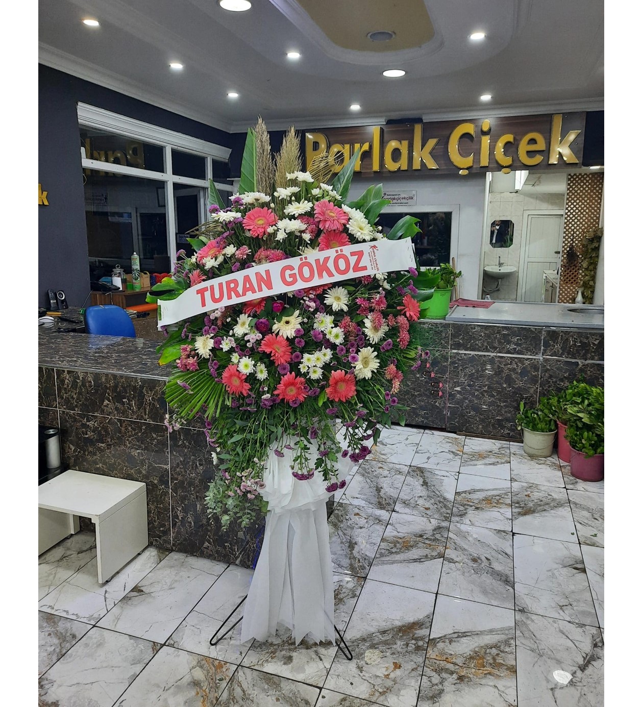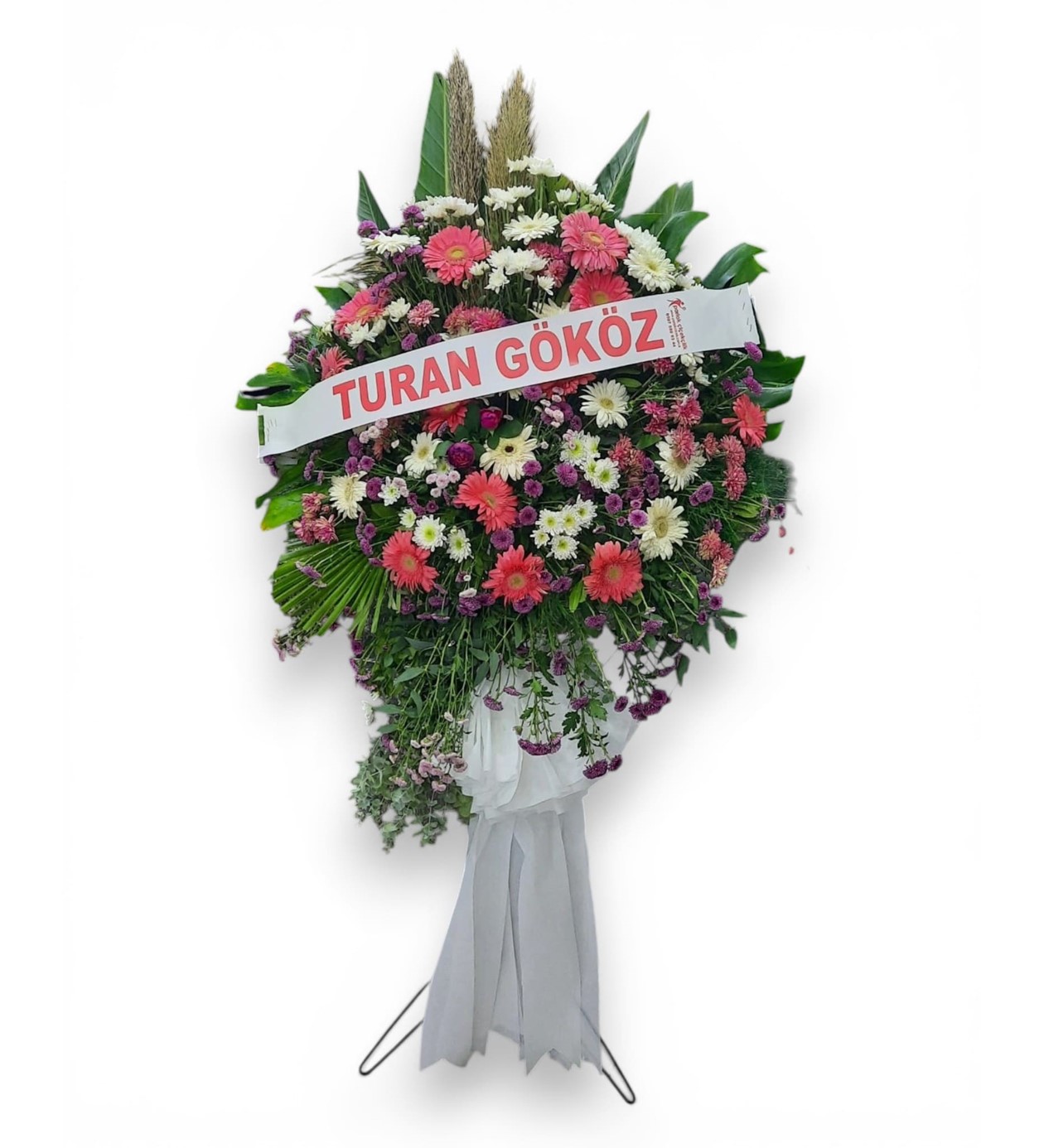 Özel günlerin en şık eşlikçisi olan bu ferforje aranjman, pembe ve beyazın huzur veren uyumunu, görkemli bir sunumla birleştiriyor. Taze pembe gerberalar, asil beyaz papatyalar ve mor mevsim çiçekleriyle hazırlanan bu ayaklı tasarım; katıldığınız törenlerde, açılışlarda veya kutlamalarda sizi ve kurumunuzu en iyi şekilde temsil etmek için tasarlandı.