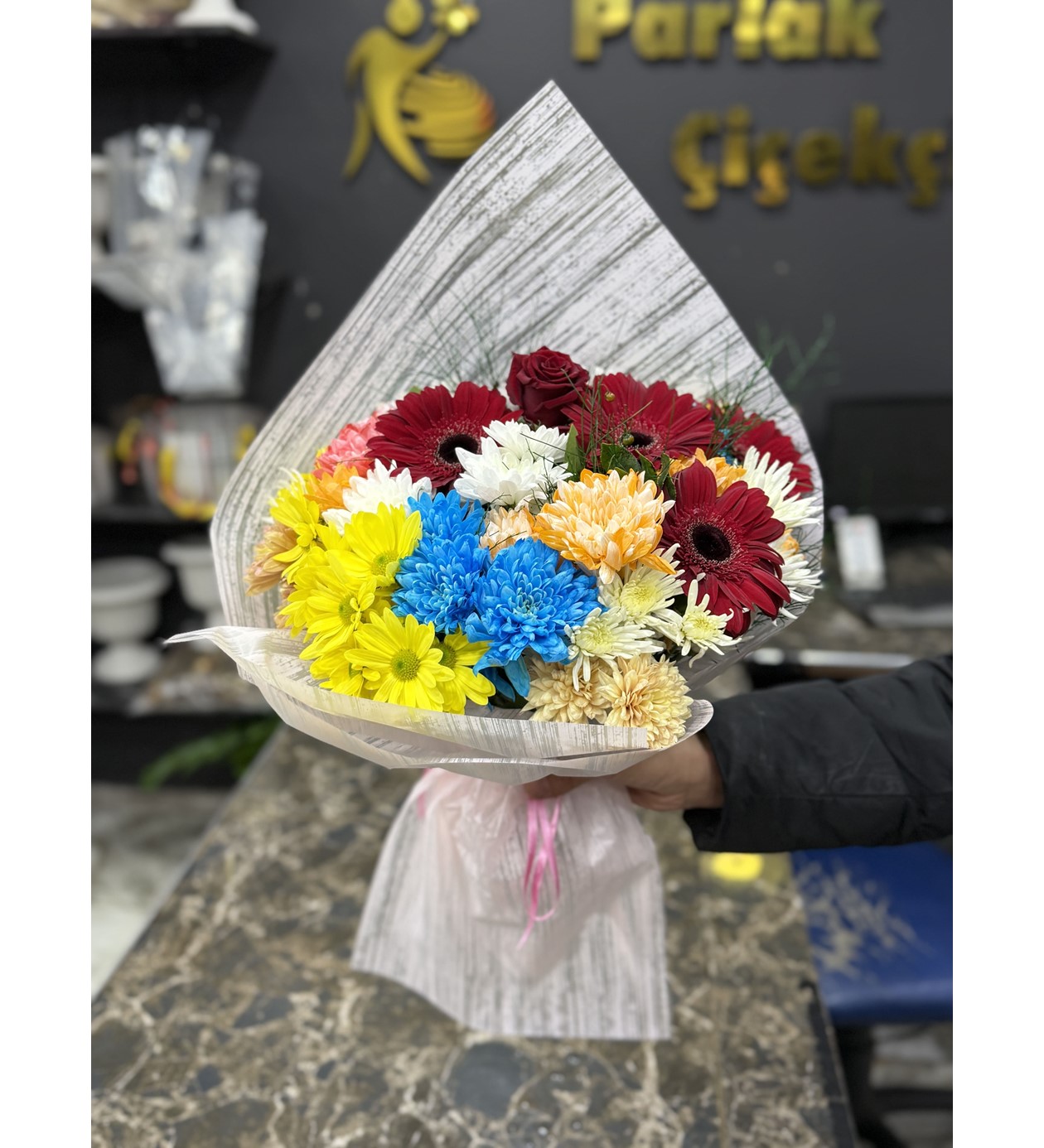 Tazelik ve Doğallık: Günlük seçilen en taze papatyalar, aralarına yerleştirilen canlı yeşil bitkilerle desteklenerek doğanın tüm enerjisini bukete taşır.