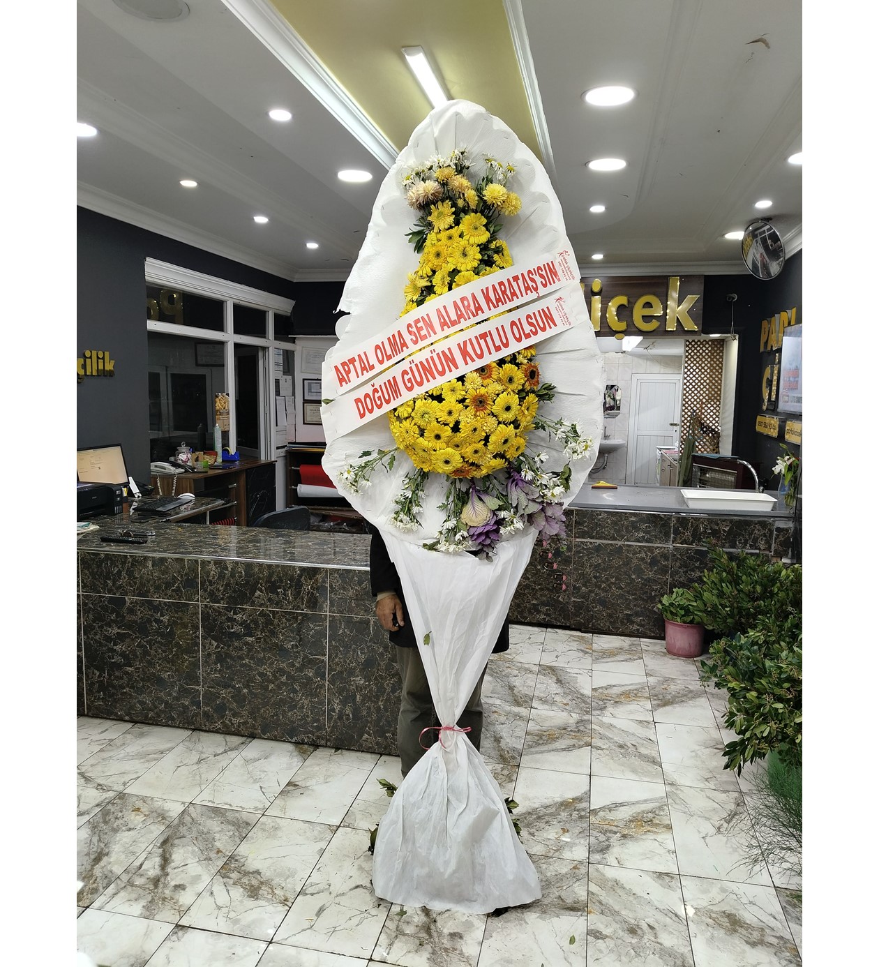 Yeni başlangıçları kutlarken veya sevdiklerinizin en mutlu günlerine eşlik ederken, sarının pozitif enerjisini ve zarafetini kullanın. Modern beyaz paketlemesi ve dolgun çiçek yapısıyla dikkat çeken bu çelenk, hem kurumsal kimliğinize yakışır bir asalet hem de samimi bir tebrik mesajı sunuyor.