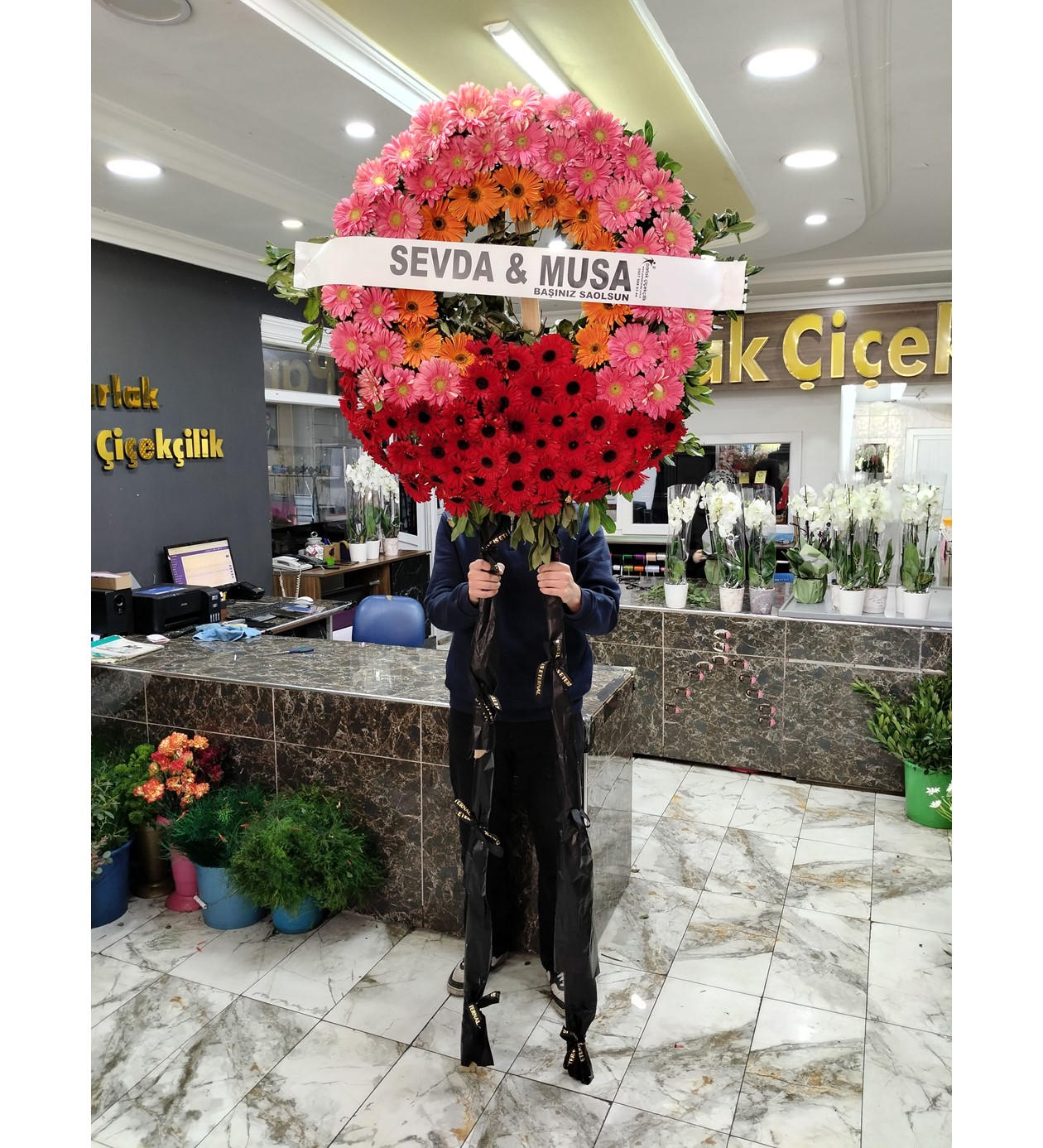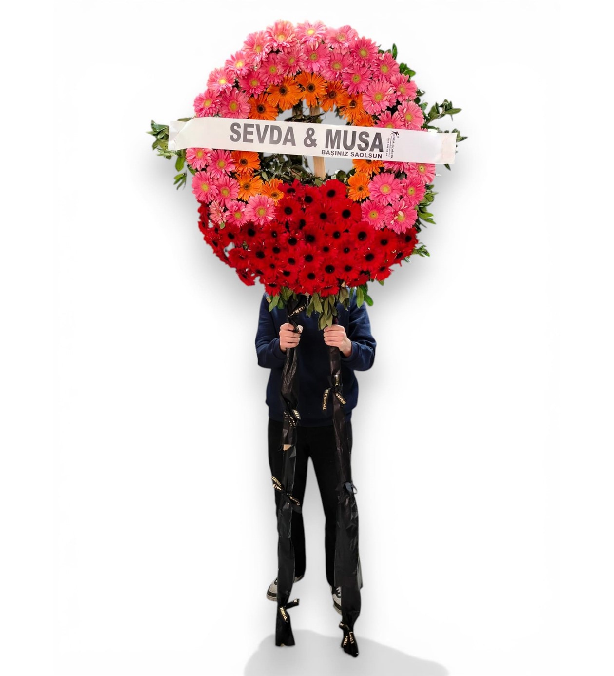 Bu özel aranjmanda, kırmızının vakarını ve pembenin zarafetini yansıtan taze gerberalar, usta çiçekçilerimiz tarafından hiçbir boşluk kalmayacak şekilde "tam dolu" formda işlenmiştir.